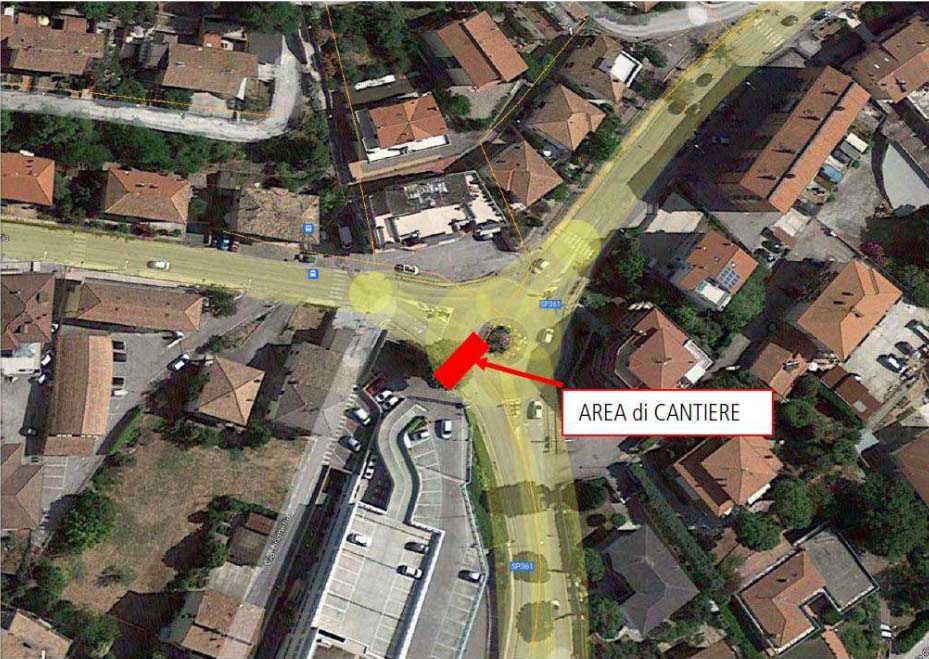 L’area in rosso è quella interessata dal cantiere questa notte