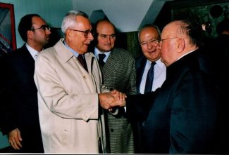 Arnaldo Forlani tiene la propria mano su di un giovane Arnaldo Ippoliti