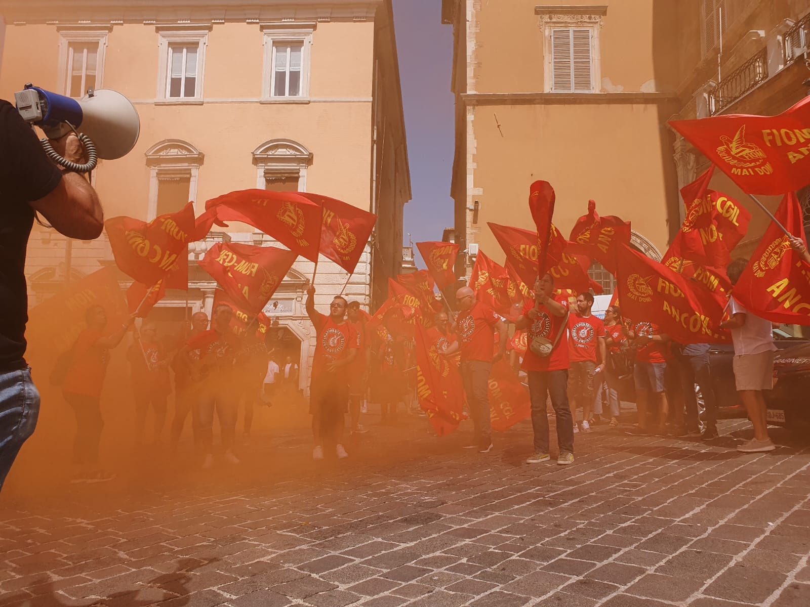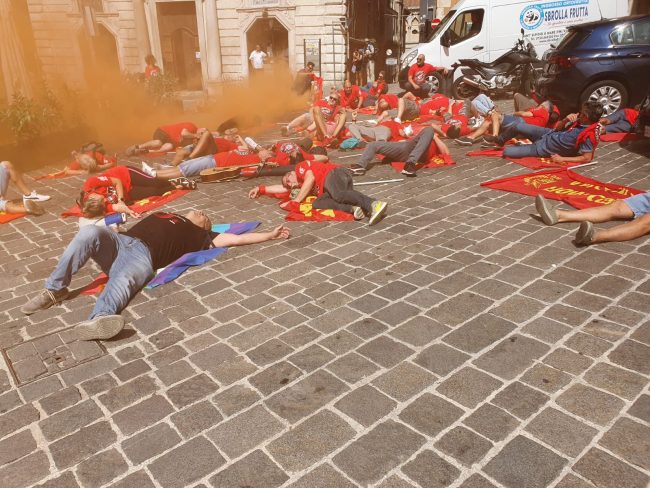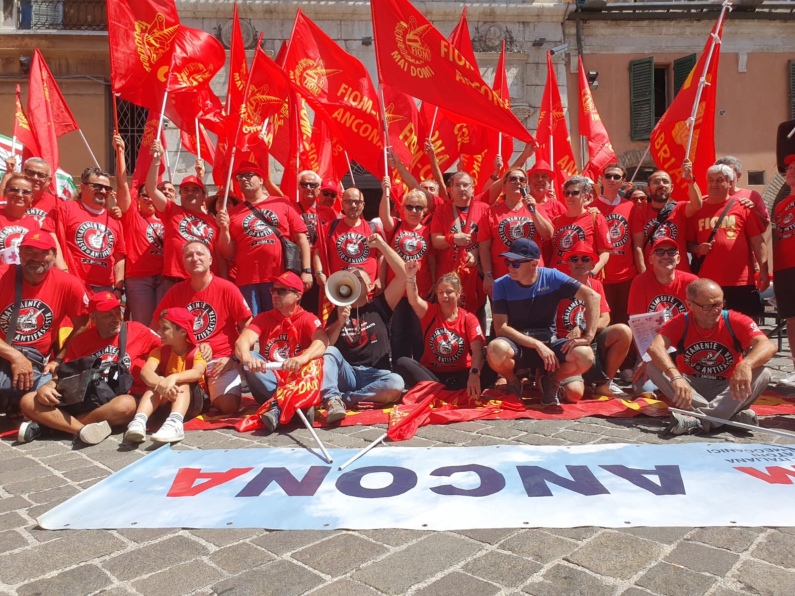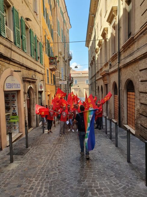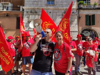 Il 10 luglio sarà la volta di quelle del Sud del Paese. Fin dall’inizio del primo turno, questa mattina in tantissime fabbriche, anche nelle Marche le maestranze hanno incrociato le braccia, fermando la produzione e formando presidi davanti ai luoghi di lavoro, in molti casi davanti alle Unioni degli industriali locali e alle Prefetture. Ad Ancona, in particolare, sono stati circa 300 i manifestanti in piazza del Plebiscito davanti al palazzo del governo, tra loro soprattutto i lavoratori delle aziende con vertenze, come Whirlpool e Cnh. Si è parlato di salario, detassazione degli aumenti, garanzie e tutele dei livelli occupazionali, sicurezza nei luoghi di lavoro ed è stato inscenato anche un flash mob davanti alla Prefettura di Ancona per dire no alla guerra e alle morti bianche sul lavoro.