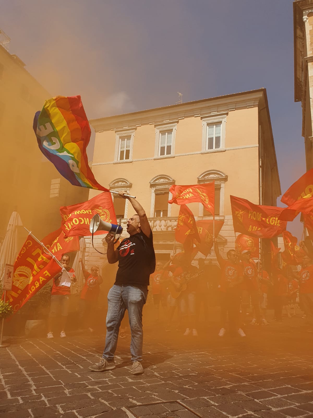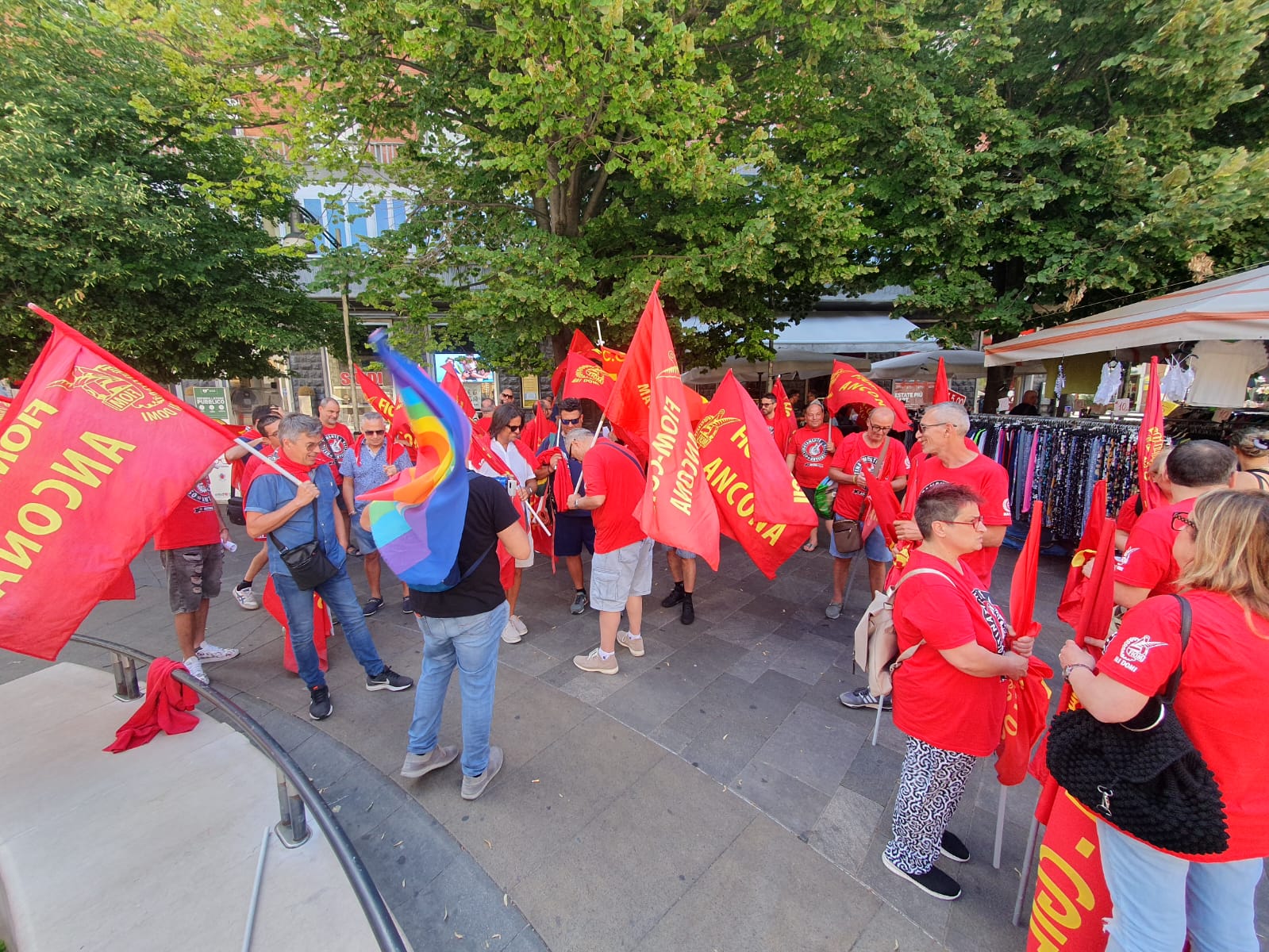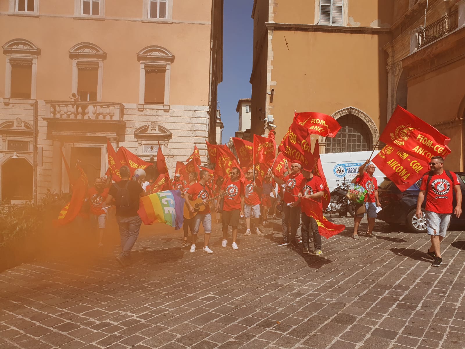 Il 10 luglio sarà la volta di quelle del Sud del Paese. Fin dall’inizio del primo turno, questa mattina in tantissime fabbriche, anche nelle Marche le maestranze hanno incrociato le braccia, fermando la produzione e formando presidi davanti ai luoghi di lavoro, in molti casi davanti alle Unioni degli industriali locali e alle Prefetture. Ad Ancona, in particolare, sono stati circa 300 i manifestanti in piazza del Plebiscito davanti al palazzo del governo, tra loro soprattutto i lavoratori delle aziende con vertenze, come Whirlpool e Cnh. Si è parlato di salario, detassazione degli aumenti, garanzie e tutele dei livelli occupazionali, sicurezza nei luoghi di lavoro ed è stato inscenato anche un flash mob davanti alla Prefettura di Ancona per dire no alla guerra e alle morti bianche sul lavoro.
