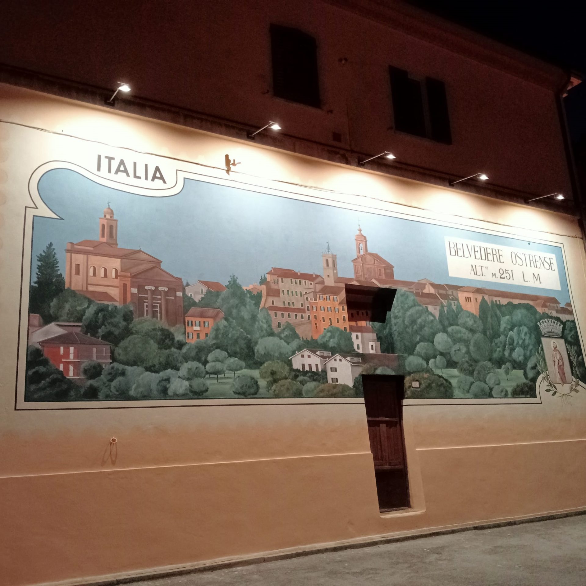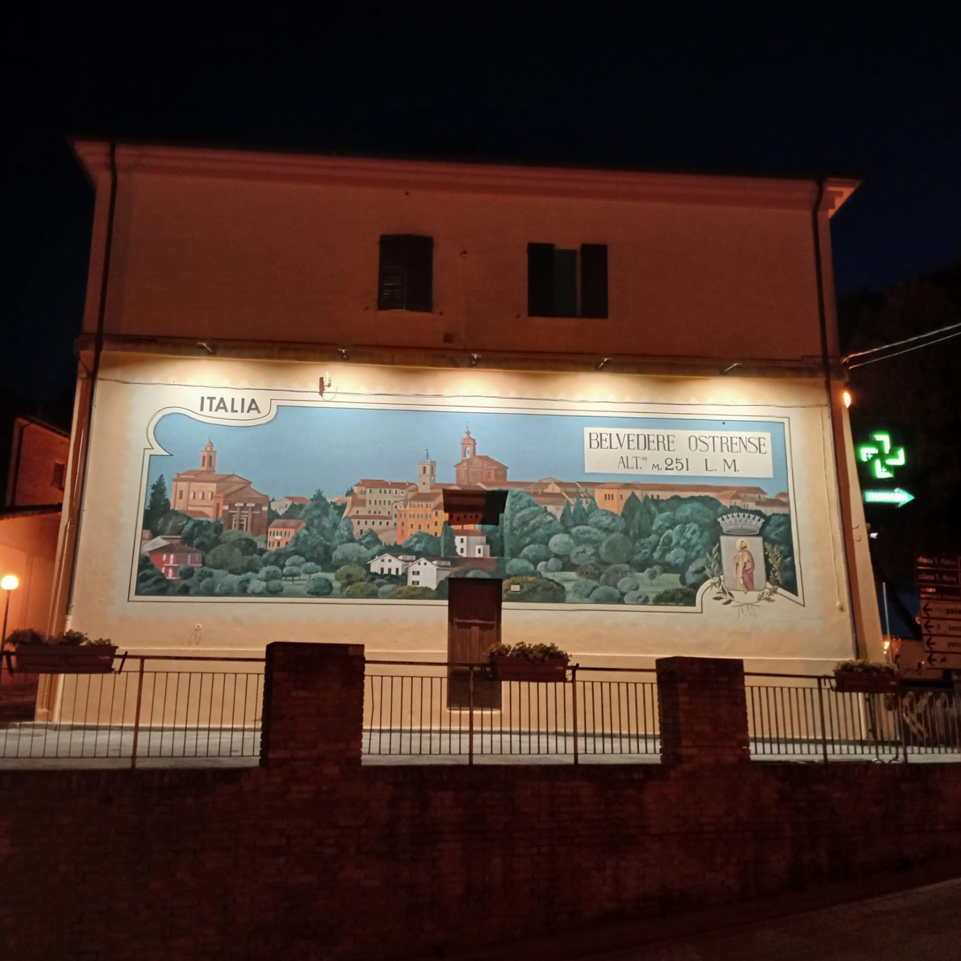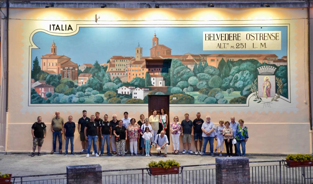 Un murale grande quanto la facciata di un intero edificio. E’ il primo in assoluto che compare a Belvedere Ostrense ed ha un significato speciale. E’ stata infatti inaugurata domenica scorsa l’opera pittorica della pittrice Tina Loiodice intitolata “Benvenuti a Belvedere”. Il murale riproduce lo scorcio tipico e caratteristico dello skyline di Belvedere Ostrense con i suoi tre campanili che si stagliano verso il cielo (quello della chiesa di San Pietro Aposto, quello della Torre dell’Orologio e quello della Collegiata di Santa Maria) e il profilo delle case che circondano l’antica cinta muraria.