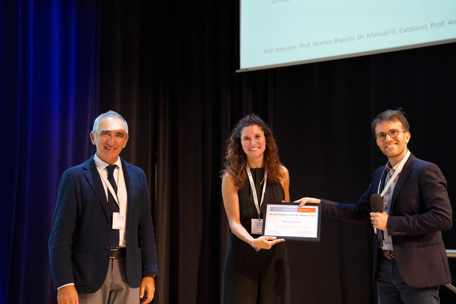 Federica Barontini riceve il premio Best PhD Thesis Award in Haptics “Wearable Haptics for advanced Human Machine Interaction”
