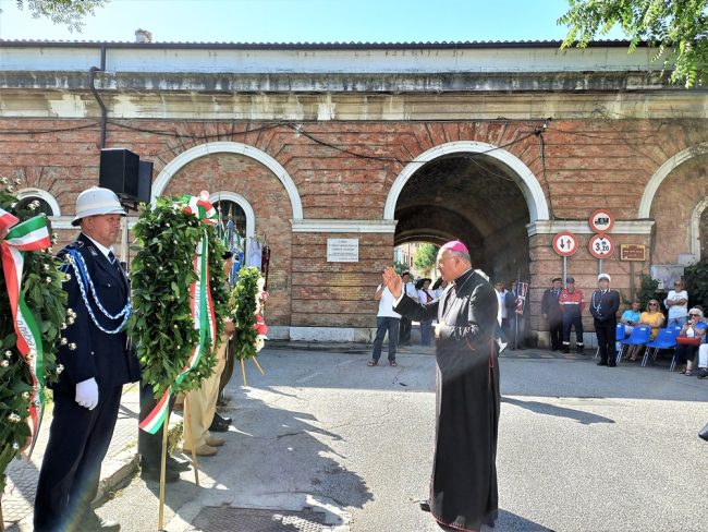 A seguire l’arcivescovo di Ancona-Osimo monsignor Angelo Spina ha benedetto le corone di alloro deposte a memoria dei caduti sotto la lapide che a Porta Santo Stefano ricorda la liberazione della città.