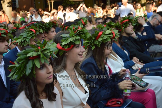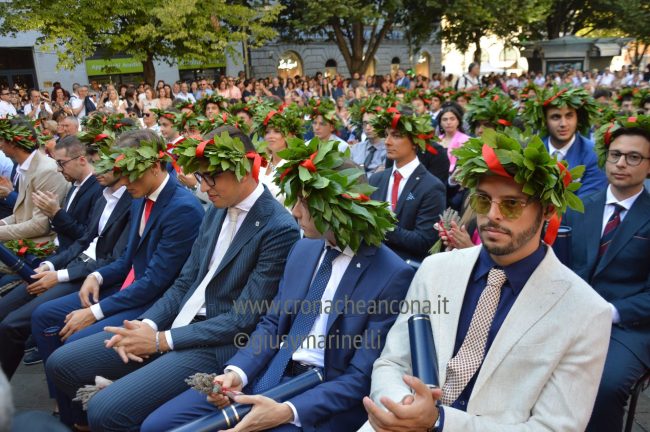 Lauree in piazza Roma, il bis. Oggi ad essere proclamati dottori in economia e ingegneri sono stati 185 tra studentesse e studenti. Un altro grande successo per questa iniziativa dell’Università Politecnica delle Marche che inorgoglisce l’intera città, sempre più unite nei fatti così come nella volontà politica della nuova giunta comunale.