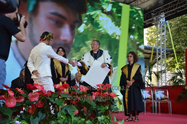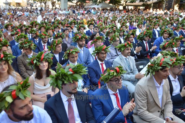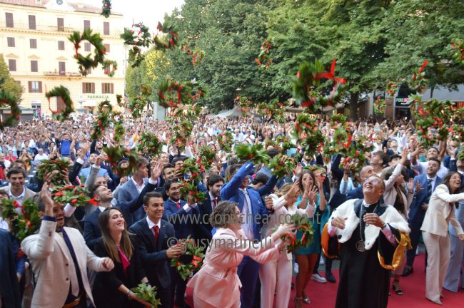 Dopodiché è stato il momento della consegna delle pergamene con l’immancabile foto di rito con il Magnifico Rettore. Al termine, quest’ultimo con la consueta formula accademica ha proclamato tutti laureati e pochi istanti dopo tutte le corone sono volate in aria come il rito vuole.