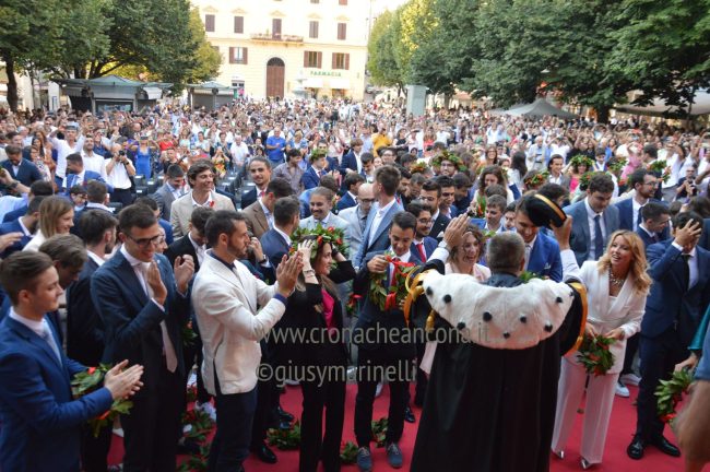 Nonostante caldo e sole siano tornati a farsi sentire, diverse migliaia di genitori, parenti e amici dei ragazzi hanno atteso il fatidico momento della proclamazione. Pensate. Erano così tanti che a centinaia hanno dovuto assistere fuori dalle transenne, tanta era la voglia di essere presenti in una giornata così importante per i propri ragazzi.