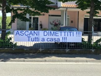 Uno dei cartelli di protesta spuntati a Castelfidardo che invocano le dimissioni del sindaco Roberto Ascani