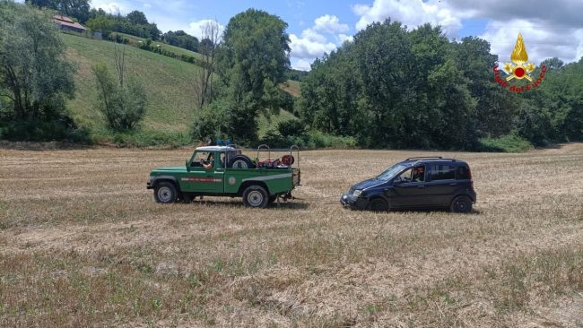 L’auto finita nel campo