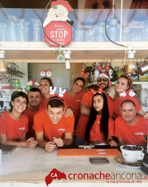 Lo staff del Mama di Palombina vestito a tema natalizio per il Ferragosto