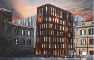 Il rendering della nuova sede della Provincia vista da via San Martino. L’intersezione via Palestro – via Marsala è ben visibile