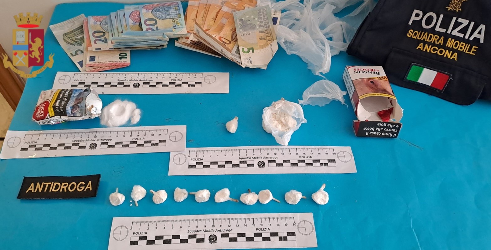 Inoltre, dai successivi accertamenti è anche stato verificato che il cittadino tunisino risultava avere a proprio carico un ordine di espulsione dal territorio nazionale, come misura di sicurezza, emesso dalla Procura della Repubblica presso il Tribunale di Potenza nel luglio 2017 e contestuale decreto di dichiarazione di pericolosità sociale.  Gli inequivocabili riscontri probatori, hanno fatto formalizzare l’arresto a carico dell’uomo sia per lo spaccio e la detenzione ai fini di spaccio della cocaina, che per la sua posizione di clandestino sul territorio nazionale;  su disposizione dell’autorità giudiziaria, è stato collocato presso le camere di sicurezza della Questura di Ancona in attesa dell’udienza di convalida, celebrata questa mattina davanti al gip del Tribunale di Ancona. L’arresto è stato convalidato con la misura dell’obbligo di firma in attesa del giudizio.