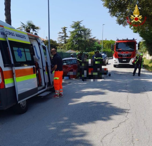CASTELFIDARDO - L'incidente lungo via Alighieri. Sul posto i vigili del fuoco di Osimo e l'ambulanza di Loreto