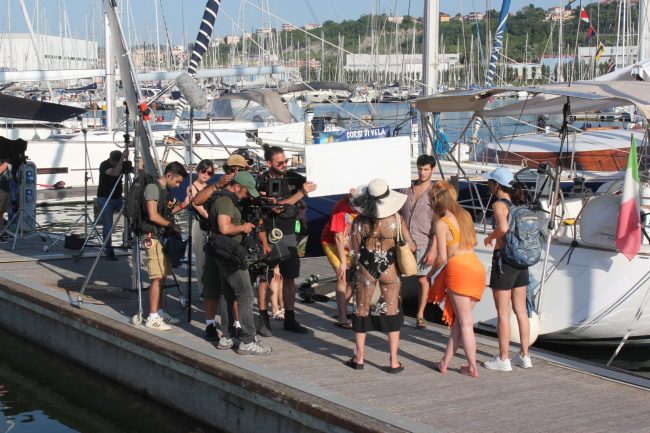 Un momento delle riprese de ‘La spiaggia dei gabbiani’