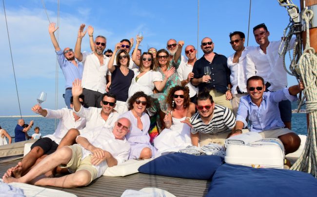 Elegante, fresco ma di grande struttura, ricco di profumi e di notevole longevità. È questo il Podium, il Verdicchio della Casa Vinicola Garofoli che quest’anno compie trent’anni ed è stato celebrato con un evento al quale ha partecipato tutta la grande famiglia Garofoli. È accaduto domenica quando dal porto turistico di Marina Dorica il Podium è salpato a bordo di un magnifico caicco. Era questo vino, inserito da Wine Spectator nel novero dei migliori cento vini al mondo, il festeggiato e allo stesso tempo l’assoluto protagonista di un aperitivo che ha condotto fino al tramonto i suoi ospiti o meglio la sua famiglia, costituita dalle attuali generazioni Garofoli e dai collaboratori dell’azienda. Tutti insieme hanno brindato al largo, regalandosi, prima che sia il mercato ad accogliere l’edizione numero trenta, un assaggio del fiore all’occhiello della casa vinicola marchigiana.