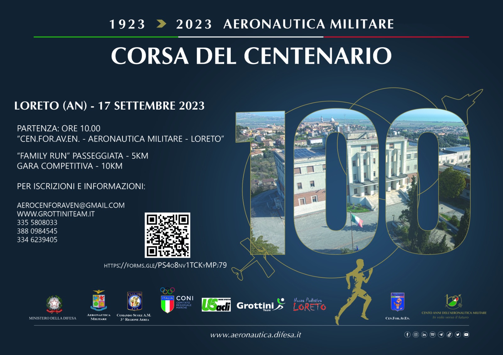 Anche il Centro di Formazione Aviation English di Loreto parteciperà il prossimo 17 settembre all’evento sportivo dedicato ai 100 anni dell’Aeronautica Militare. Un appuntamento, quello della “Corsa del Centenario”, organizzato con il supporto della Grottini Team di Recanati, dell’Us Acli di Macerata, della Nuova Podistica Loreto e con il patrocinio del Coni regionale. Il 28 marzo 2023 l’Arma Azzurra ha tagliato il prestigioso traguardo dei 100 anni. Un secolo di vita al servizio del Paese e degli Italiani, da quando negli anni venti la prestigiosa Regia Aeronautica venne costituita come Forza Armata autonoma. In occasione di questo storico evento, l’Aeronautica Militare ha deciso di organizzare la gara podistica, che prenderà il via il 17 settembre alle 10 in circa trenta basi distribuite su tutto il territorio nazionale, anche in quella della città mariana. Sarà una giornata dedicata allo sport e alla condivisione, dove tutti gli atleti partecipanti potranno confrontarsi in una gara competitiva di 10 Km o semplicemente trascorrere una parentesi d’allegria con la passeggiata per famiglie: la “Family Run” di 5 Km.