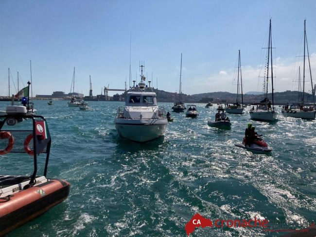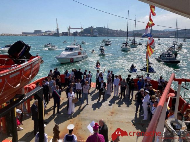 Giunti al Porto da dove la ‘Elisabeth’, con a bordo Monsignor Spina, Silvetti e altre autorità, è partita accompagnata da decine e decine di barche dei diportisti e ‘scortata’ dalla Capitaneria di Porto e delle moto d’acqua della Polizia di Stato.