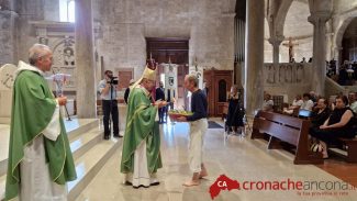 Questa mattina la Festa del Mare ha vissuto il suo momento più intenso e sacro con la messa alla Cattedrale di San Ciriaco prima e il lancio della corona in mare poi. Quest’ultimo rituale è stato eseguito congiuntamente dall’Arcivescovo della diocesi di Ancona e Osimo, Monsignor Angelo Spina e dal sindaco di Ancona Daniele Silvetti.