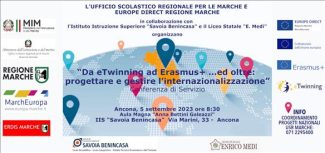Delle strategie di internazionalizzazione ed innovazione della scuola marchigiana nell’ambito della programmazione europea per il periodo 2021-2027, della gestione e rendicontazione dei progetti europei, della presentazione del nuovo “Piano regionale Erasmus+ eTwinning”, di disseminazione del progetto di Accreditamento Erasmus dell’Usr Marche, di Equipe Formativa Territoriale, pacchetti didattici del Consiglio d’Europa e molto altro, si parlerà nella conferenza di servizio “Da eTwininng a Erasmus+ …e oltre: progettare e gestire l’internazionalizzazione”.