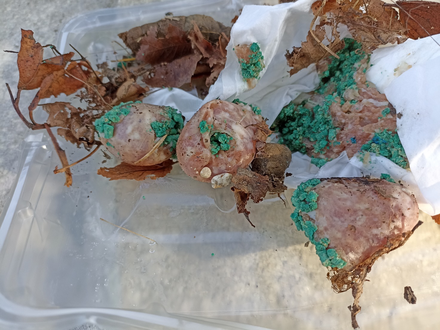 Il titolare riferiva infatti che erano state rinvenute a terra, davanti al cancello d’ingresso della struttura e lungo la strada attigua, delle polpette di carne tipo salsiccia con incorporati dei pezzi di sostanza di colore verde/azzurro, presumibilmente velenosa, utilizzata come anti-lumaca..