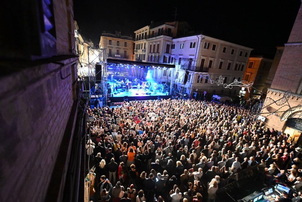 La parole dell’assessora Michela Glorio sintetizzano bene l’atmosfera del concerto osimano di Max Gazzè. Un bagno di folla ieri sera ha abbracciato il cantautore romano, che dal palco con l’Orchestra di Mirco Casadei ha fatto cantare e ballare le piazze centrali della città. Gli artisti hanno salutato il pubblico tra gli applausi con ‘Una musica può fare’ «per celebrare questa bella unione. Grazie per tutte le emozioni che ci avete regalato questa sera» ha detto al microfono Gazzè. Un live indimenticabile, a ritmo di musica folk, per la serata di chiusura delle feste patronali 2023.