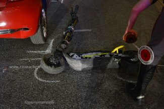 Un monopattino coinvolto in un incidente stradale (Archivio)