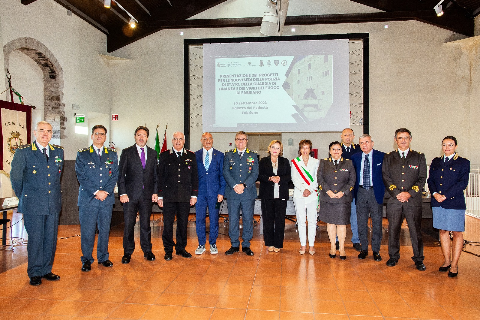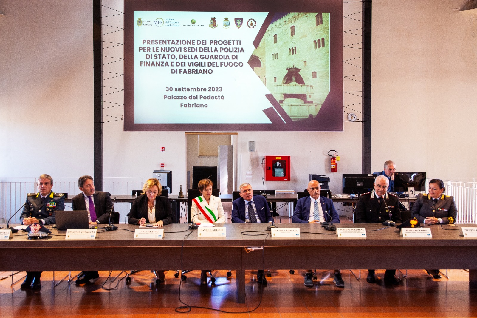 Le amministrazioni statali presenti a Fabriano avranno sedi più moderne ed efficienti, che consentiranno di ottimizzare l’uso degli immobili pubblici e di potenziare i servizi della pubblica amministrazione e i presidi di sicurezza presenti in città, con conseguenti risparmi di spesa sui fitti passivi. Sono questi i temi al centro della conferenza stampa che si è svolta sabato mattina presso la sala conferenze di Palazzo del Podestà, alla presenza del sottosegretario di Stato al Ministero dell’Economia e delle Finanze, on. Lucia Albano, del sindaco di Fabriano Daniela Ghergo, del questore di Ancona Cesare Capocasa, del direttore del Servizio Tecnico Logistico e Patrimoniale della Polizia di Stato per le regioni “Toscana – Umbria – Marche” Giuseppe Solìmene, del comandante regionale Marche della Guardia di Finanza Alessandro Barbera, del comandante dei carabinieri Forestali Regione Marche Roberto Nardi, del direttore regionale dei vigili del fuoco Marche Cristina D’Angelo, del direttore rerritoriale Marche dell’Agenzia del Demanio Cristian Torretta. Presenti anche il comandante provinciale della Guardia di Finanza Carlo Vita, il comandante provinciale dei vigili del Fuoco Pierpaolo Patrizietti, il dirigente del Commissariato P.S. di Fabriano Angelo Sebastianelli e il comandante della Tenenza della Guardia di Finanza di Fabriano Gennaro Pietroluongo.