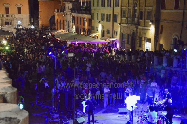 Nella serata, tra i tanti eventi in contemporanea tra le varie piazze della città, i clou sono stati il concerto del tenore anconetano David Mazzoni a piazza del Papa e, come già detto nelle prime righe, dallo Zoo di 105 a piazza Cavour.