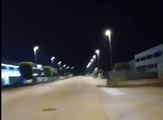 Un fotogramma del video postato sui social: le luci dell’area industriale dell’Acquaviva sono accese