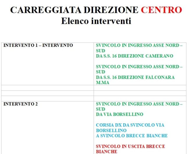 L’intervento in questione prevede la «pulizia dei bordi stradali, la rimozione del materiale accumulatosi nel tempo che favorisce la crescita di erbe ed arbusti infestanti e l’otturazione delle caditoie stradali, la pulizia delle canalette laterali per permettere il corretto deflusso delle acque meteoriche, la disostruzione delle caditoie ormai completamente intasate, la potatura delle essenze arboree presenti nello spartitraffico centrale e a bordo strada, la segnaletica stradale verticale ed orizzontale, la raccolta di copertoni, pezzi di lamiera, pezzi di carrozzeria, vetro, plastica e così via».