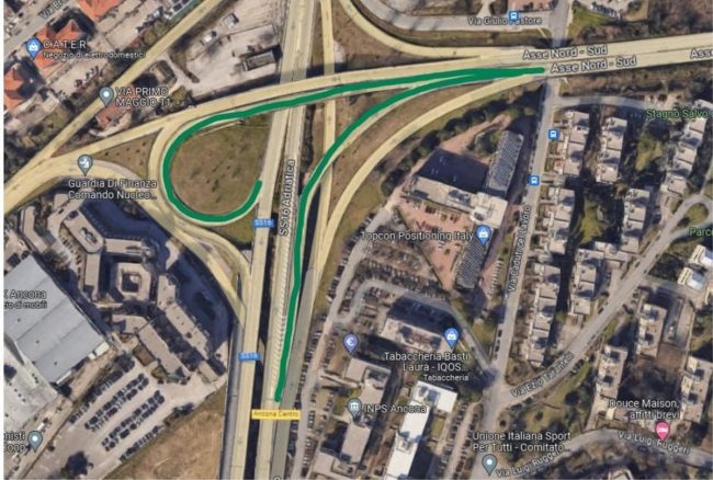 Il Comune fa sapere che «Si parte domani dalla zona della Baraccola, direzione centro (nella foto in basso, in verde è indicata l’area di intervento ndr) . Verranno chiusi due svincoli: quello in ingresso sull’Asse per chi proviene dalla Statale direzione sud (Numana e autostrada) e lo svincolo in ingresso sull’Asse per chi proviene dalla Statale direzione Falconara – Centro città. L’asse – infine – sarà raggiungibile attraverso percorsi alternativi indicati dall’apposita segnaletica gialla».