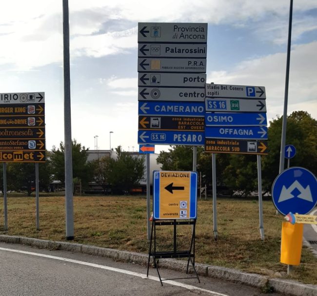 Chiusi lo svincolo per chi proviene dalla Statale direzione sud e quello per chi viene da Falconara, ma l’Asse è raggiungibile da percorsi alternativi indicati da appositi cartelli e percorribile. Qualche rallentamento nell’area dei lavori ristretta a una corsia.