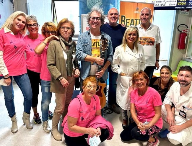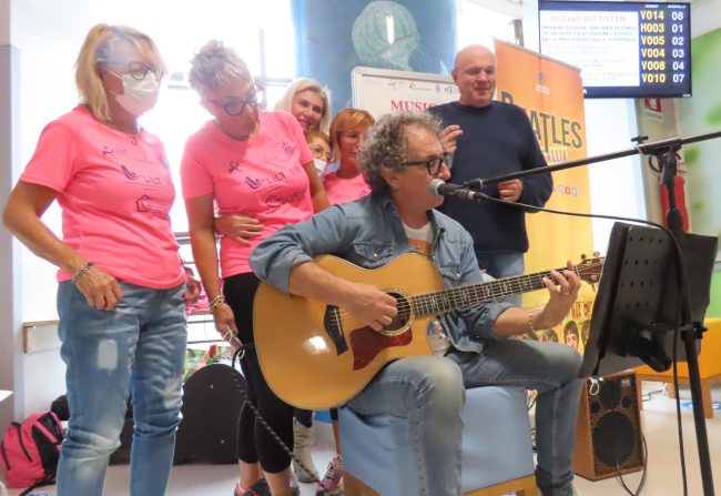 BeatleSenigallia ha partecipato mercoledì, 18 ottobre, al Music Day, presso la Clinica Oncologica di Torrette di Ancona, con un piccolo concerto dal titolo ‘All you need is love’, con la chitarra e la voce di Paolo Fornaroli, il maestro Andrea Celidoni ed il presidente di BeatleSenigallia Paolo Molinelli.