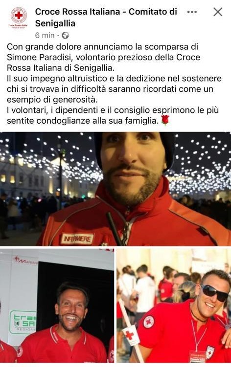 La morte di Simone Paradisi, 44enne infermiere al pronto soccorso di Senigallia, ex Pioniere della Cri di Ancona e quindi Volontario della Cri Senigalliese, ha scosso non solo quanti lo conoscevano e gli erano amici, ma pure coloro che avevano avuto modo di trascorrerci semplicemente del tempo assieme.