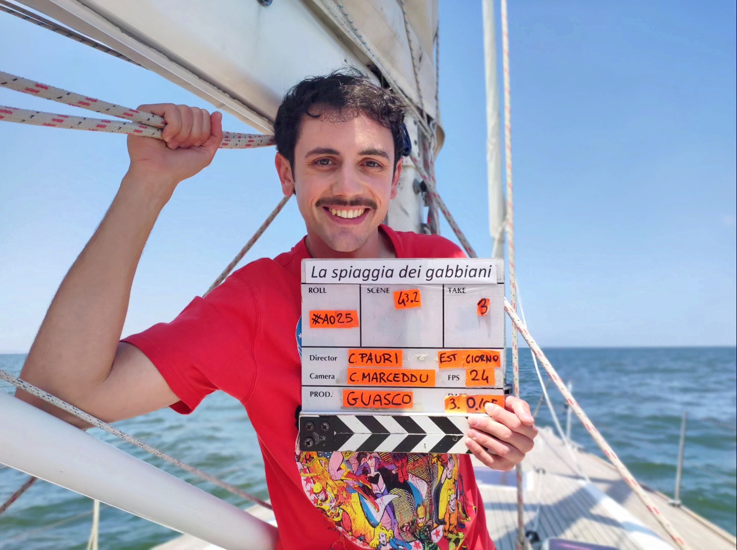 Daniele Vagnozzi durante le riprese de La Spiaggia dei gabbiani