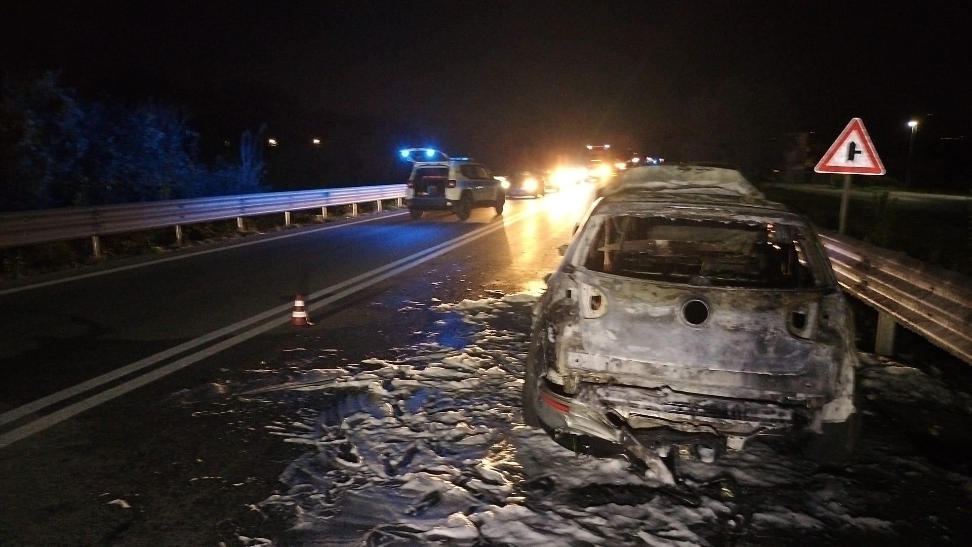 Inevitabile qualche disagio al traffico, che è stato regolamentato a senso unico alternato. E’ stato richiesto anche l’intervento di una squadra tecnica dell’Anas per il ripristino della sede stradale e per la sicurezza viaria. Gli operai dovranno lavorare parecchio questa sera per bonificare l’asfalto per via dei detriti prodotti dalla combustione (l’auto è completamente distrutta), prima che la Polizia locale ripristini la viabilità ordinaria.