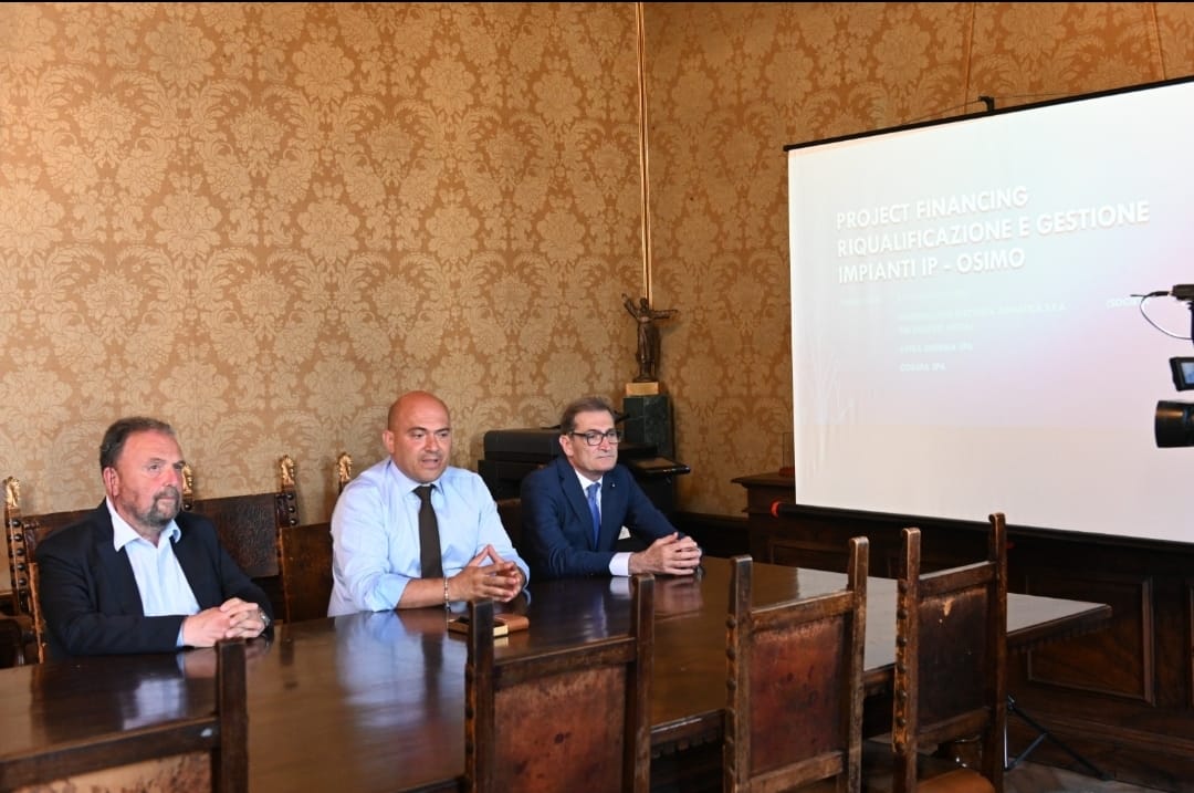 da sin. l’ad di Astea spa, Fabio Marchetti, il sindaco Simone Pugnaloni e l’amministratore unico di Dea, Tonino Osimani