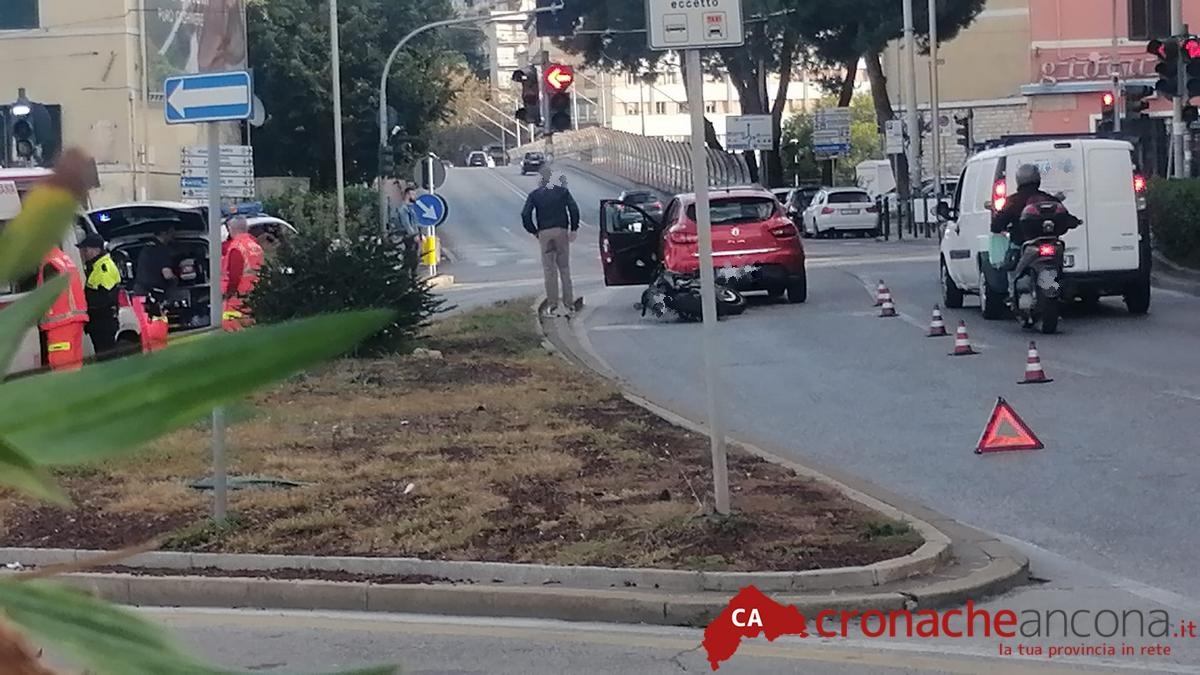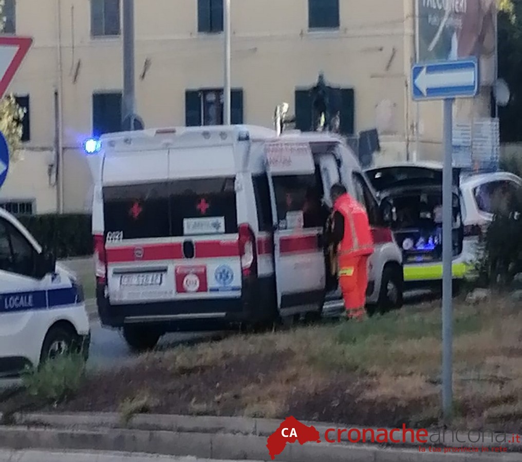 Ad avere la peggio è stato lo scooterista, un 34enne finito poi a terra. Chiamato il 112, sul posto sono intervenute un’ambulanza della Croce Rossa con l’automedica di Ancona Soccorso.