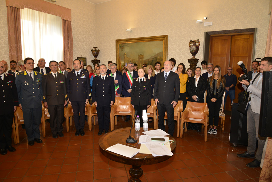 Il vice prefetto vicario Davide Garra ha consegnato i riconoscimenti nel corso della celebrazione pubblica a 19 cavalieri, 4 ufficiali e un commendatore. Il prefetto Darco Pellos, assente per motivi di salute, in collegamento video da remoto, ha salutato tutti i presenti ed in particolare si è rivolto ai nuovi cavalieri, ufficiali e commendatori dell’Ordine che con il loro esempio costituiscono un importante punto di riferimento per le giovani generazioni. Nell’occasione, sono stati letti brevi profili biografici degli insigniti caratterizzati da quegli aspetti salienti della loro attività che hanno consentito il conferimento della distinzione onorifica.