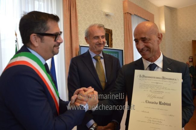 E’ stato invece conferito il titolo di ufficiale a Simona Calcagnini, viceprefetto; Giancarlo Mariani, ragioniere di Falconara e funzionario in quiescenza dal 2015, al notissimo ristoratore di Portonovo Edoardo Rubini, che d’estate attiva il servizio di soccorso dei bagnanti nella baia con il gommone di salvamento, e a Italo Tanoni, ex dirigente tecnico ispettivo del Miur. L’unico titolo di commendatore è andato a Franco Varano, ragioniere di Montemarciano, procuratore speciale del gruppo Mondialpol. (LEGGI l’elenco degli insigniti)