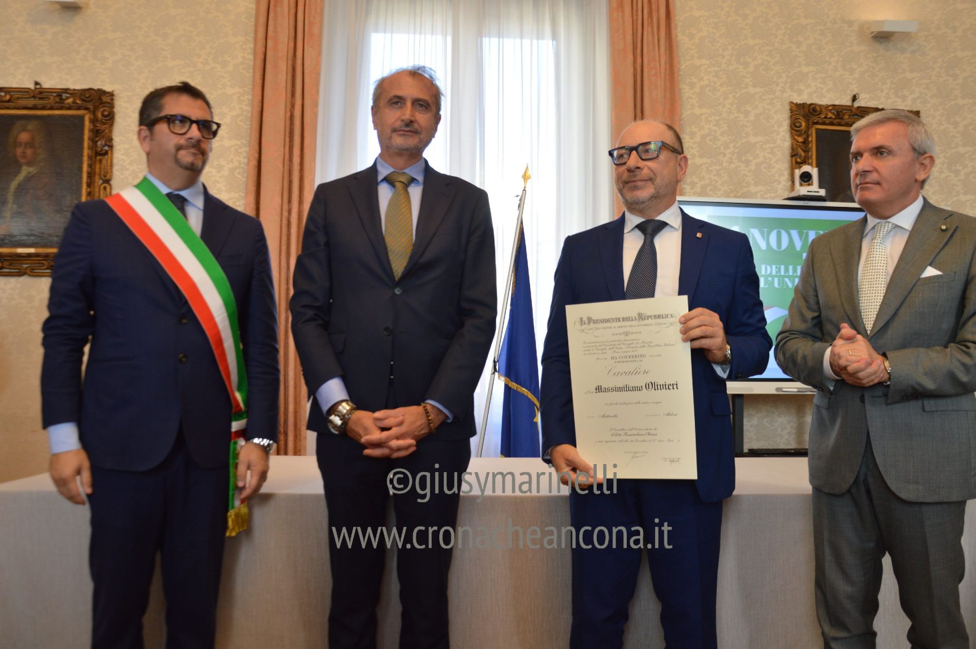 Alla cerimonia hanno presenziato le principali autorità civili e militari regionali e provinciali, nonché i sindaci dei Comuni di residenza degli insigniti, alcuni dei quali hanno accompagnato i rispettivi concittadini insigniti nel ritiro del diploma Omri. Sono diventati Cavaliere della Repubblica, il capitano di vascello Varo Benucci, ufficiale di Marina; Emanuela Bertino, fisioterapista anconetana; Giovanni Bomprezzi, già direttore generale della fondazione Caritas di Senigallia; Alessandro Bozzi, terapista di riabilitazione neuropsichiatrica di Ancona; Giulietta Breccia, dirigente scolastico in pensione ed ex sindaco di Castelfidardo; Massimo Candura, luogotenente carica speciale; Gianluca Cinti, commissario della polizia di Stato di Ancona; Paolo Fagioli, ingegnere di Ancona; Carlo Lecca, colonnello dei carabinieri; Caro Lenci artigiano tipografo a riposo di Corinaldo; Michele Maria Luchetti Gentiloni, dirigente medico e docente universitario; Maria Elisabetta Megna, tecnico sanitario di Ancona; Massimiliano Olivieri, vice questore della polizia di Stato; Marco Pierpaoli, segretario di Confartigianato Imprese Ancona e Pesaro Urbino; Graziano Pierucci, di Castelfidardo, tecnico sanitario; Barbara Rotatori, architetto di Corinaldo e dipendente comunale, responsabile del servizio di Protezione civile di Senigallia; Lorenza Scalini, fisioterapista osimana della Lega del Filo d’Oro, Luisiana Sebastianelli, pensionata, e suor Pia al secolo Loriana Maria Villani, per 39 anni responsabile della Mensa del Povero di Padre Guido ad Ancona.