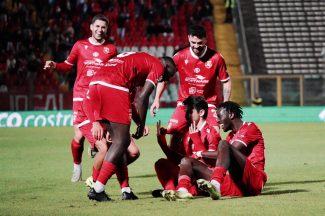PERUGIA (4-3-1-2): Adamonis 6; Paz 5,5 (22’ st Mezzoni ng), Angella 6, Vulikic 6, Bozzolan 6 (29’ st Cancellieri ng); Santoro5,5 , Bartolomei 6, Kouan 5,5 (16’ st Seghetti 7); Ricci 5,5 (16’ st Vazquez ng); Cudrig 5,5 (16’ st Lisi ng), Matos 5,5. A disp.: Furlan, Iannoni, Bezziccheri, Ebnoutalib, Torrasi, Giunti, Souarè. All. Baldini