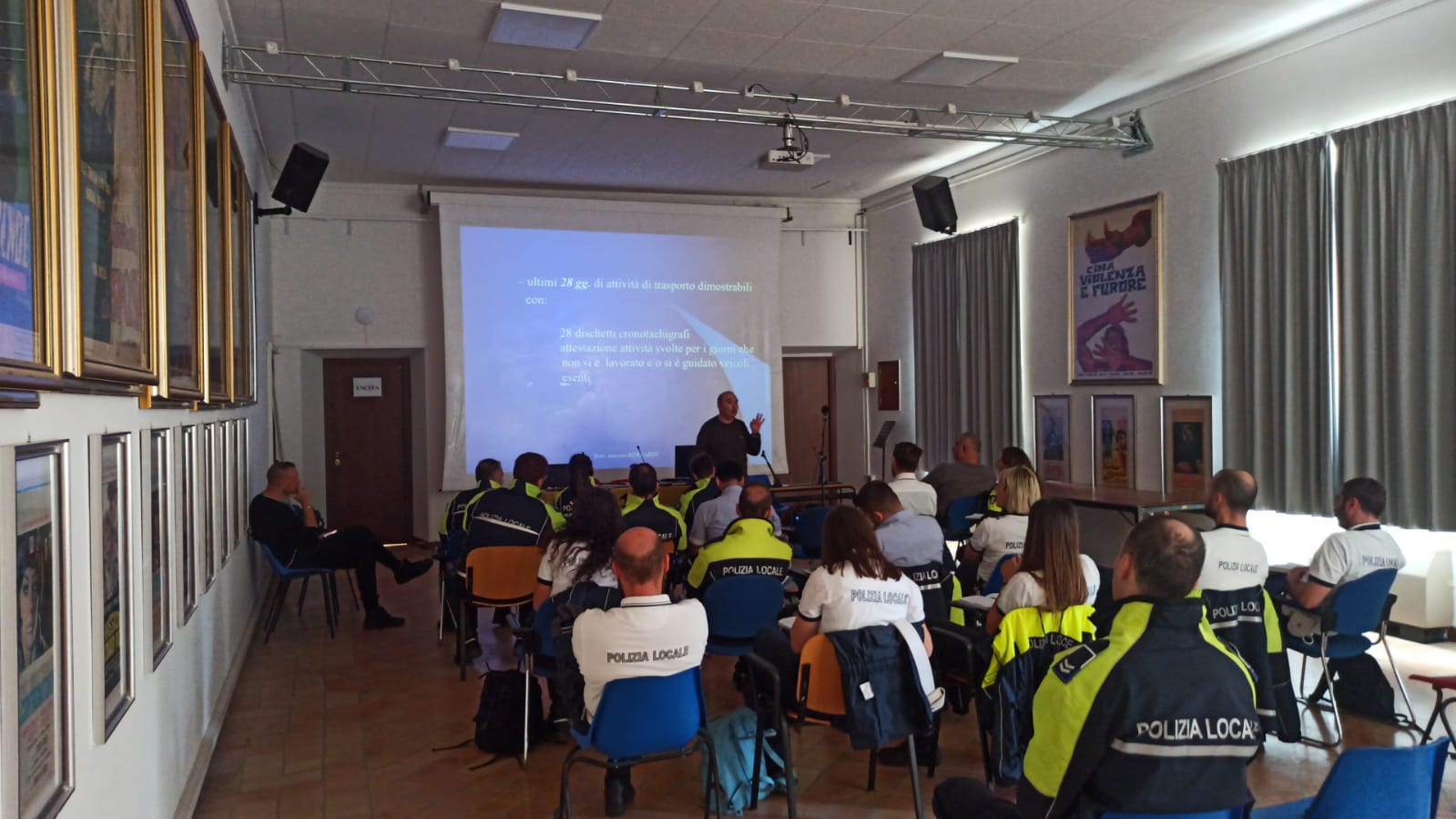 «Una proficua ed interessante giornata di studio è stata tenuta da Antonio Bernardi, comandante a.r. della sezione Polizia Stradale di Teramo che, nonostante la complessità degli argomenti, ha saputo rapire l’attenzione degli agenti illustrando con maestria gli elementi fondamentali dell’autotrasporto in relazione all’attività di controllo e sicurezza della circolazione» fa sapere una nota del comune di Castelfidardo.
