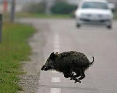 Stava andando in moto lungo la strada Provinciale del Conero quando, all’altezza della rotatoria per Portonovo, ha incrociato una famiglia di cinghiali che stava attraversando la strada.