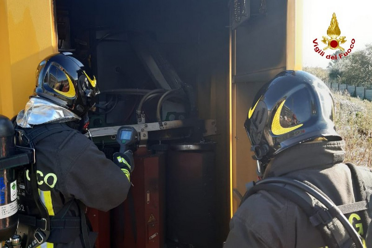 La squadra dei pompieri è stata chiamata per l’incendio di una cabina elettrica avvenuto all’interno di un cantiere.