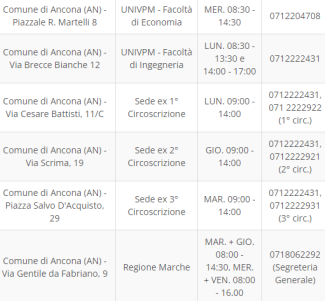 L’accesso a tale tipo di servizio avviene tramite appuntamento telefonico e qui di seguito si riportano le sedi degli uffici dedicati, con indicazione contestuale dei recapiti telefonici e degli orari di apertura riportati nella foto accanto.