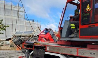La squadra dei vigili del fuoco, giunta sul posto anche con l’autogrù, ha quindi imbracato il mezzo rimettendolo sulle proprie ruote.