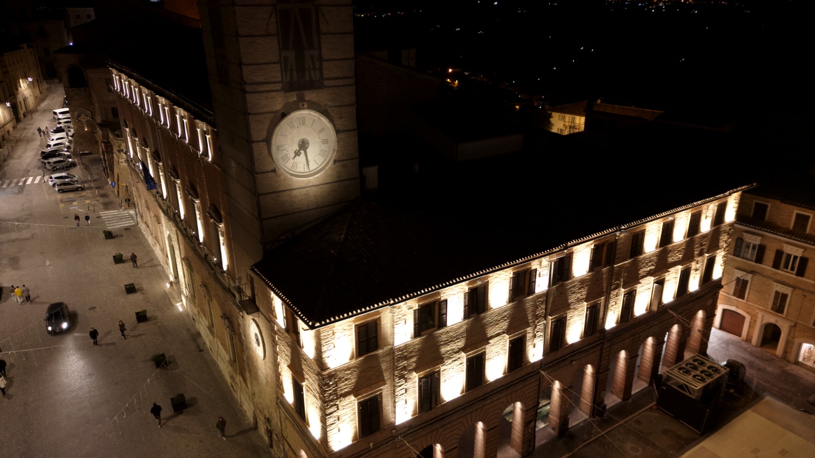 «Ben 120 faretti a led che non solo danno un colpo d’occhio suggestivo alla casa di tutti i cittadini, primo biglietto da visita della nostra Osimo, ma che garantiranno anche un risparmio energetico del 60% rispetto agli apparecchi tradizionali. – sottolinea in una nota il sindaco Simone Pugnaloni – L’intervento rientra nella nuova gestione della pubblica illuminazione da parte della Osimo Illumina, il cui contratto d’appalto prevede nuovi punti luce, alcuni dei quali per valorizzare palazzi e siti di rilevanza storico culturale. Il primo ad essere abbellito con la nuova illuminazione non poteva che essere il Comune. A breve, per festeggiare il Natale, inaugureremo i nuovi fari che illumineranno i Tre Archi. Avranno la funzione multicolore, per offrire un effetto cromatico richiesto da ricorrenze particolari, ad esempio fari rossi per la Giornata del Cuore, gialli per la Festa della Donna, blu per la Giornata dell’Europa, quella dell’Unicef o quella del diabete, oppure verde per quella della salute mentale, viola per quella della fibromialgia, arancione contro la violenza di genere».