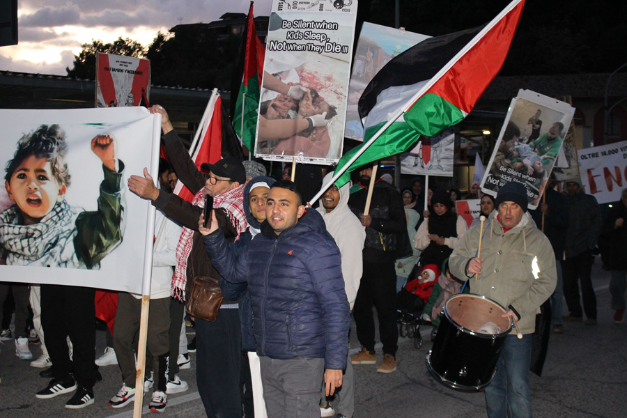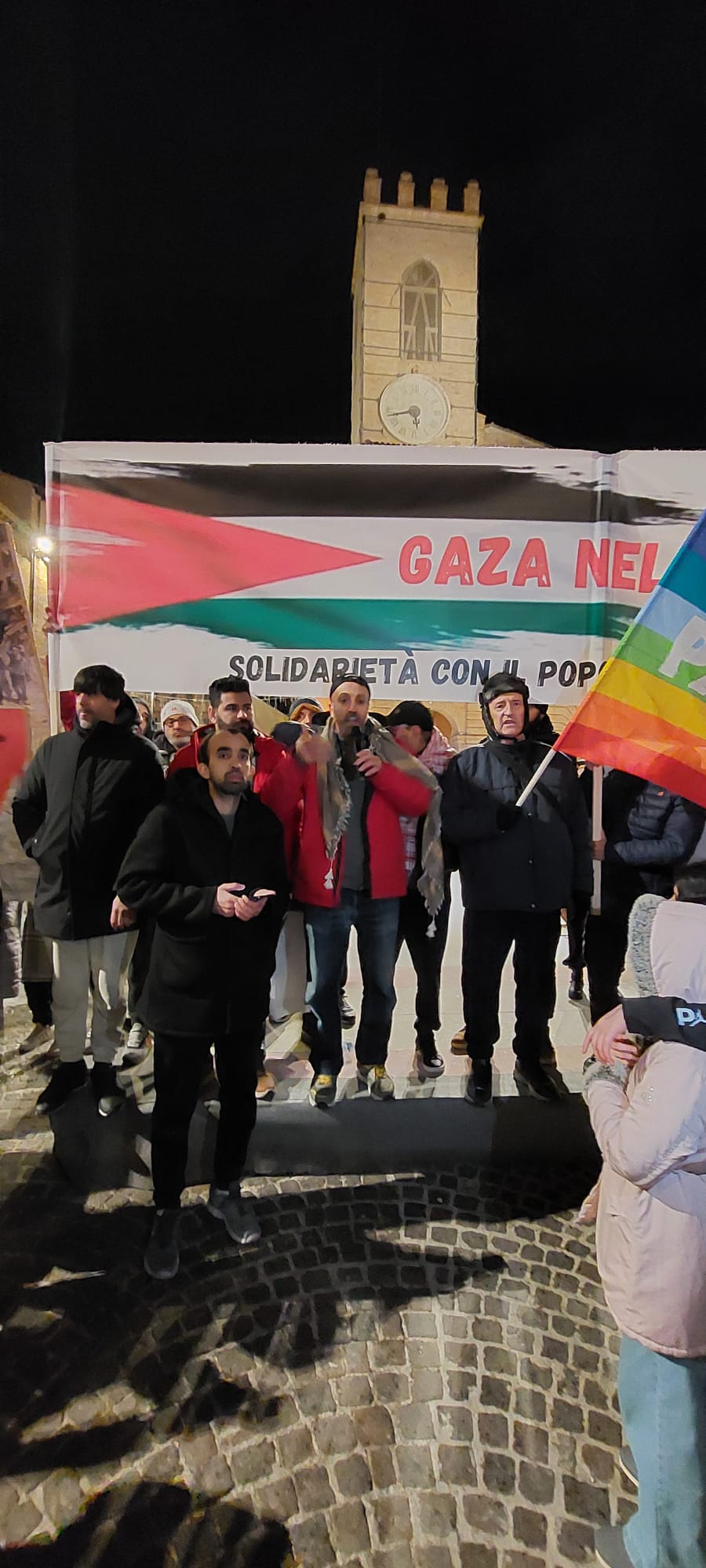 Aziz Farah, presidente della Casa della Cultura Islamica nelle Marche nel suo intervento in piazza ha sottolineato di aver partecipato alla manifestazione «per condannare il genocidio verso il popolo palestinese, 12.000 morti in un mese di cui più di 4.000 bambini, ovvero un bambino ogni 15 minuti, che paragonato alla nostra città equivale a più dei residenti di osimo stazione. Il silenzio della comunità internazionale e dei mezzi di informazione è assordante di fronte ai bombardamenti degli ospedali, ambulanze, scuole, moschee e chiese che sono luogo di rifugio per gli sfollati. Nelle ultime ore prima della tregua hanno bombardato una scuola i cui morti che loro chiamano vittime collaterali ed un incalcolabile numero di feriti. Oggi nel 2023 è impensabile vedere delle mamme scrivere il nome sui corpi dei propri figli affinché lì possa riconoscere dopo i bombardamenti. Siamo qui per dire che Gaza non ha bisogno di 4 giorni di tregua, ma di una totale libertà ed indipendenza. Deve cessare ogni forma d’assedio. Cielo, mare e terra di Gaza ai suoi abitanti. Siamo qui per dire basta alle vittime civili e le vittime non sono numeri ma vite umane; bambini e donne, ricordiamo che oggi è la Giornata mondiale contro la violenza sulle donne. Chi sta al potere e non è grado di opporsi a tali atrocità, non sarà mai in grado di difendere i diritti della collettività» ha chiuso Farah.