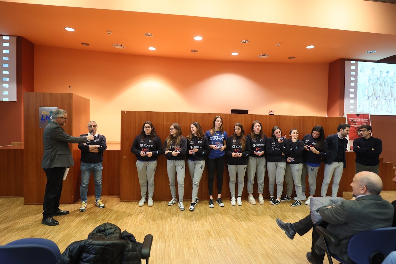 La presentazione delle squadre per la stagione da poco iniziata, i premi a tutti i protagonisti di quella passata. Riunita in una gremita sala convegni della Figc la Vela Nuoto Ancona ha passato in rassegna davanti alle autorità politiche e sportive tutte le sua attività, presentando le squadre che hanno cominciato o stanno cominciando la stagione agonistica – già impegnate nei rispettivi appuntamenti quelle di nuoto e quella di pallanuoto maschile – concludendo la partecipata mattinata con i premi assegnati agli atleti che si sono distinti in campo nazionale, che hanno partecipato alle rappresentative regionali o che hanno vinto i campionati regionali delle rispettive categorie e discipline.