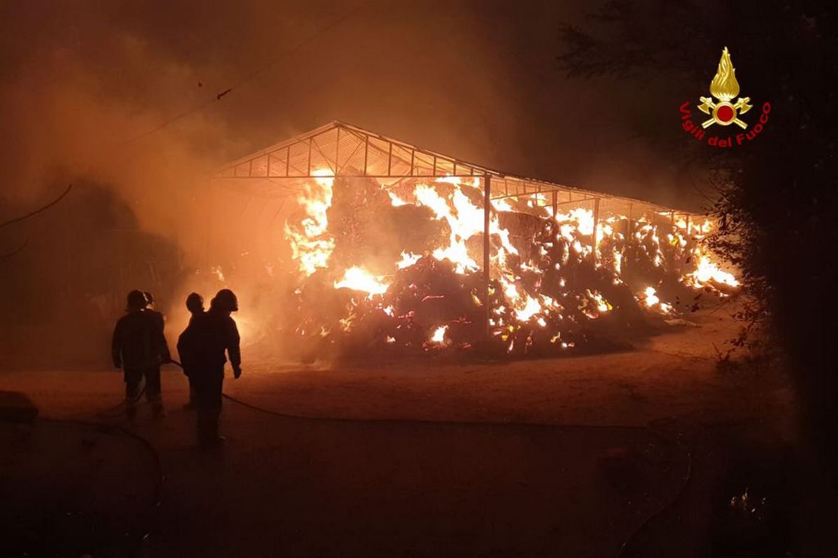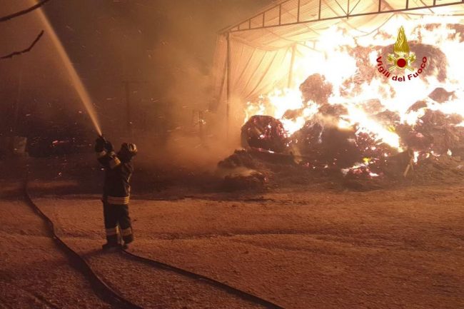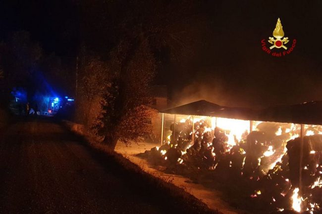 Intervento dei vigili del fuoco nella notte per l’incendio di un fienile.